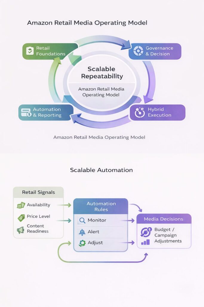 Amazon evolved from reactive performance management into governed retail media infrastructure. The system became scalable without multiplying complexity.
